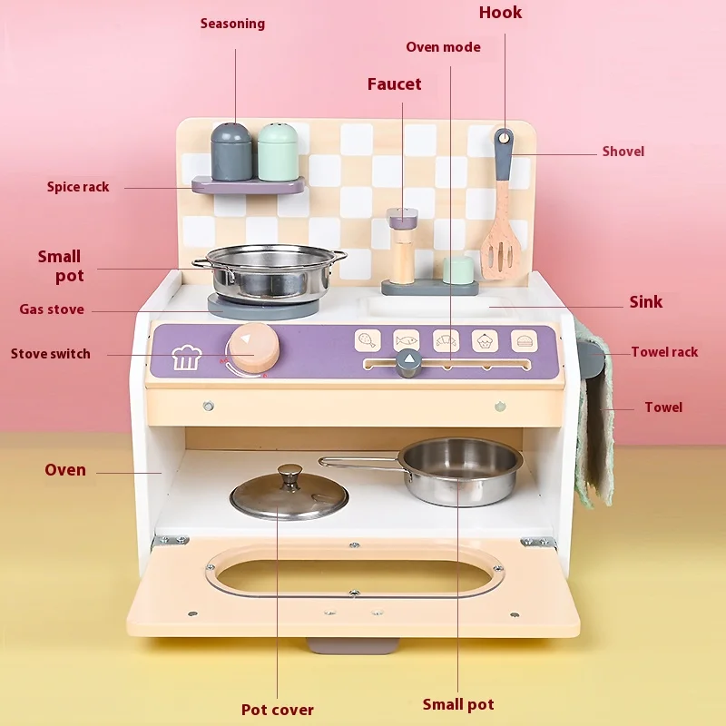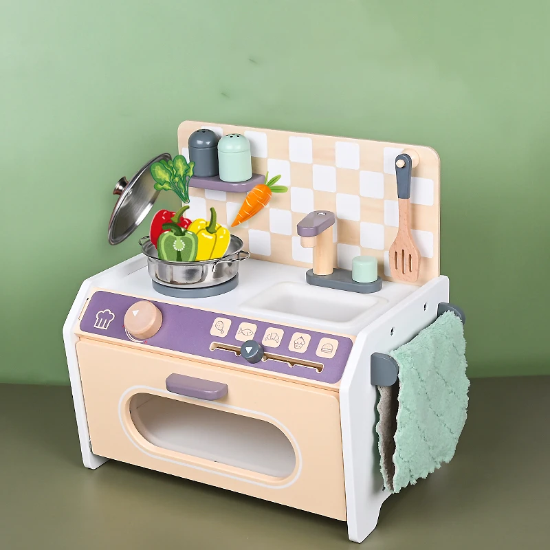 2026 New Products Colorful Montessori Educational Pretend Play Kitchenette Toy Wood Direct Factory Sale for Preschool Kids Boys